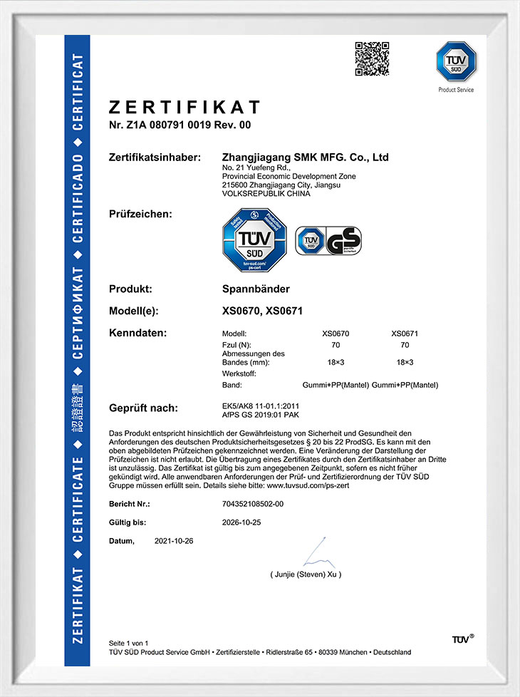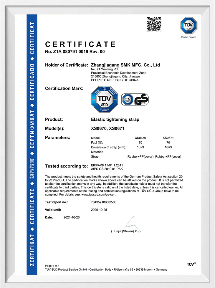 Attache et cordon élastique certifiés TUV&GS
