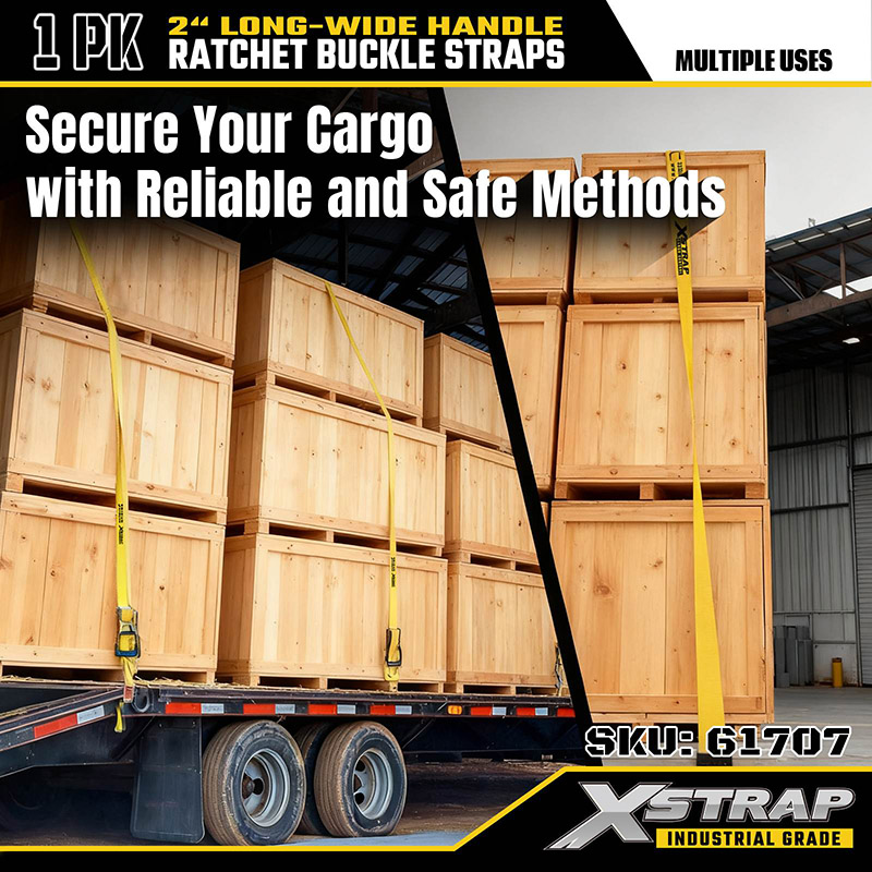 Les sangles à cliquet robustes Xstrap sont conçues pour sécuriser les charges surdimensionnées et lourdes sur les remorques à plateau, les camions utilitaires, les équipements de construction et dans les applications industrielles.