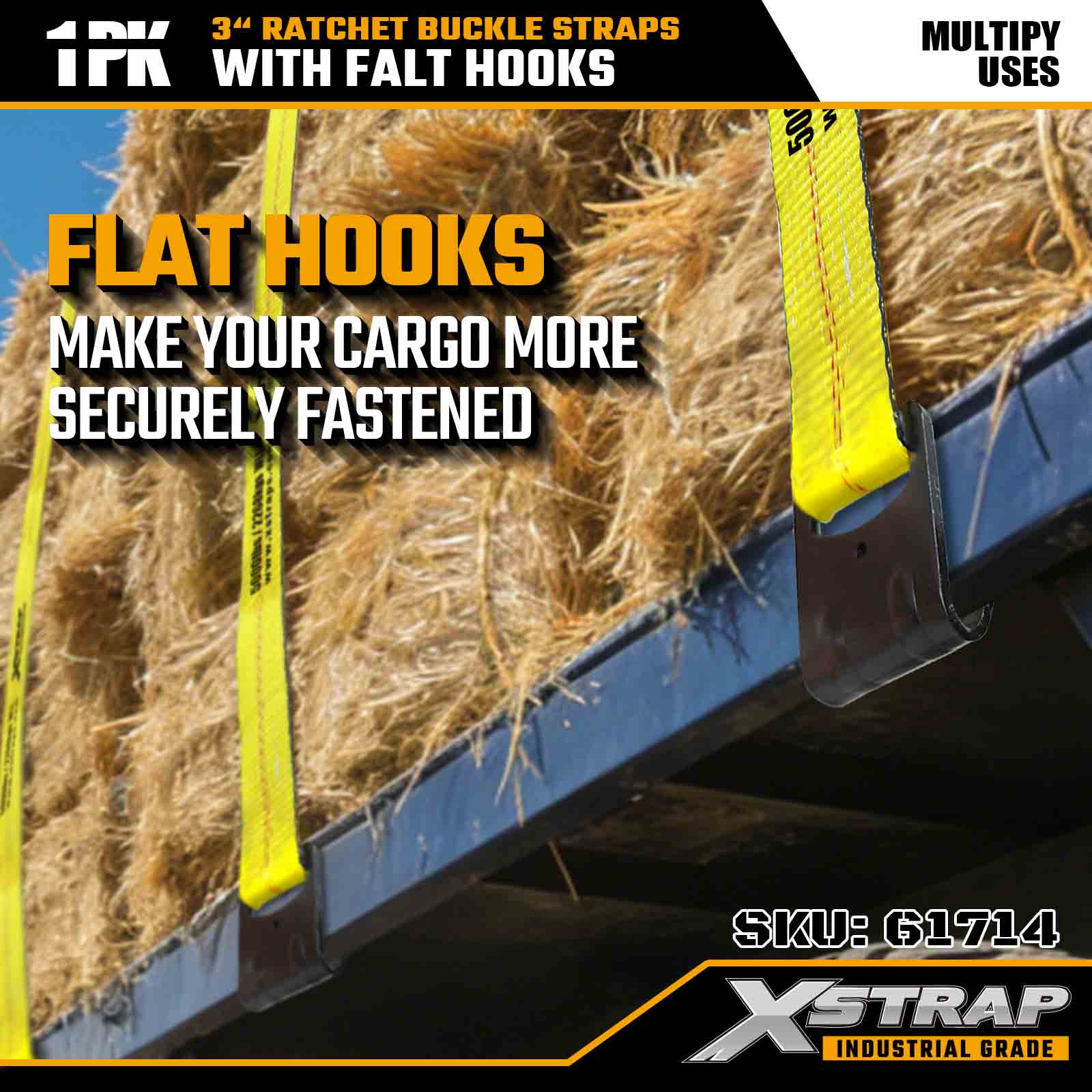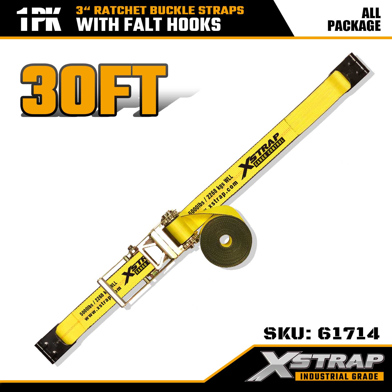 Xstrap 61714 Sangles à boucle à cliquet de 3" x 30 pieds (paquet de 1) - Plats au crochet, capacité de charge de 5 000 lb, résistance à la rupture de 15 000 lb, arrimage robuste pour camions, remorques et transport de marchandises industrielles.
