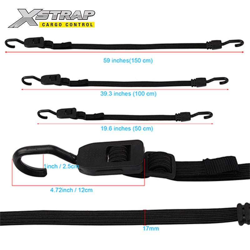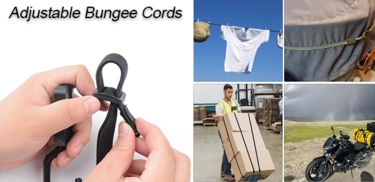 Les cordons élastiques réglables offrent une stabilité accrue et une tendance réduite à creuser dans les articles. Ils sont polyvalents et adaptés à une large gamme d'applications, y compris l'équipement, l'organisation de stockage, les bagages ou les bâches d'attachement, les équipements d'extérieur sécurisés, le jardin, le garage ou les applications de voyage.