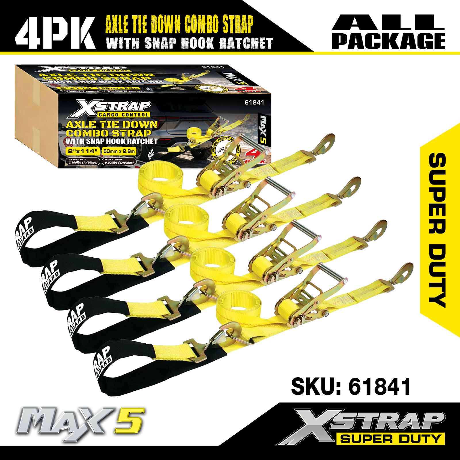 SMK est un fabricant en Chine de Xstrap 61841 2" x 114' 4PK Sangles d'arrimage à cliquet robustes 3 300 lb SWL et un fournisseur personnalisé de Xstrap 61841 2" x 114' 4PK Sangles d'arrimage à cliquet robustes 3 300 lb SWL. La gamme de produits de SMK comprend des sangles d'attachement, des cordons élastiques, des sangles de remorquage, des élingues de levage, des palans et des accessoires 4x4, largement utilisés dans les secteurs de transport, de logistique, de plein air et industriel. Sa marque interne XStrap jouit d'une forte reconnaissance sur les marchés mondiaux, aux côtés de flexible Services OEM / ODM pour les besoins personnalisés.