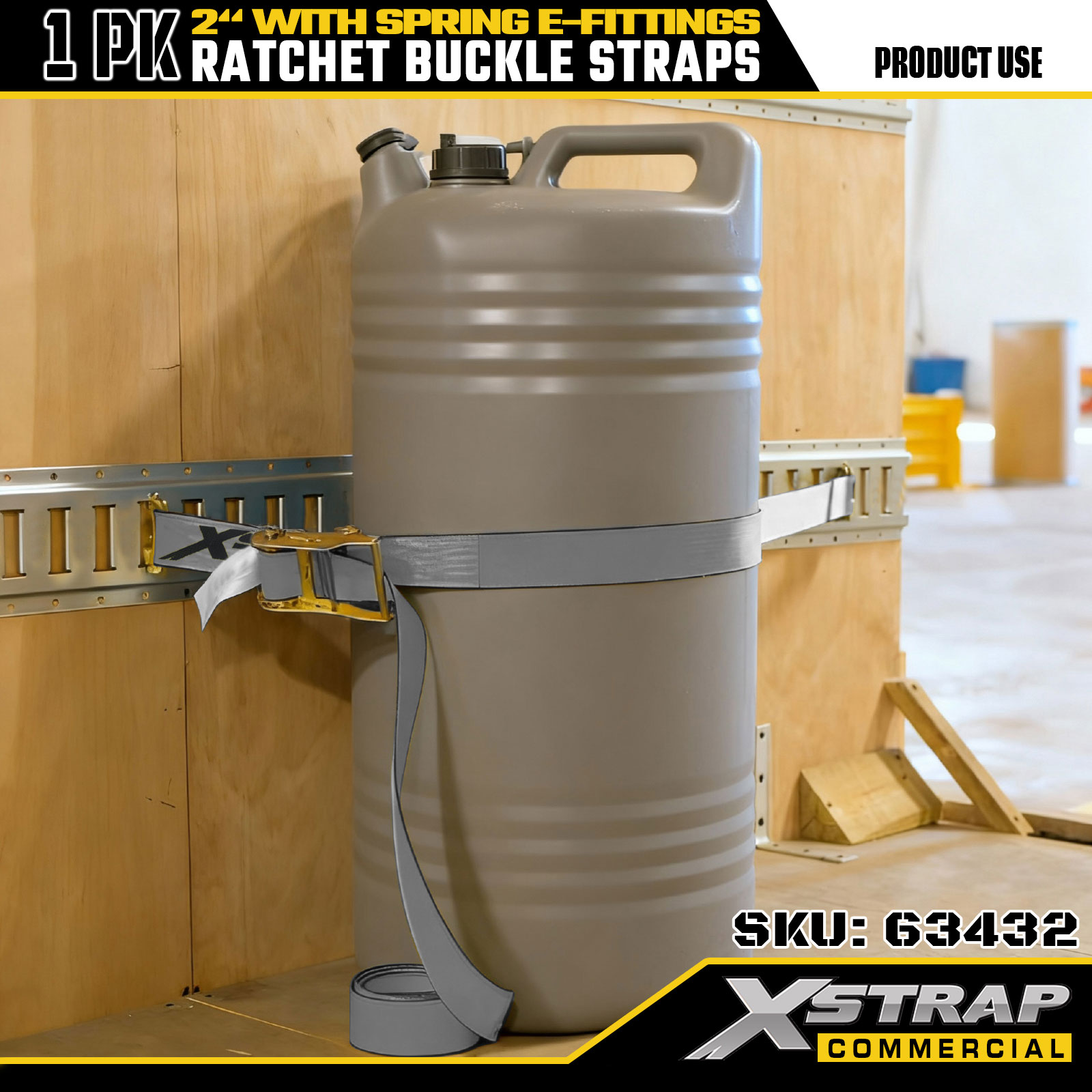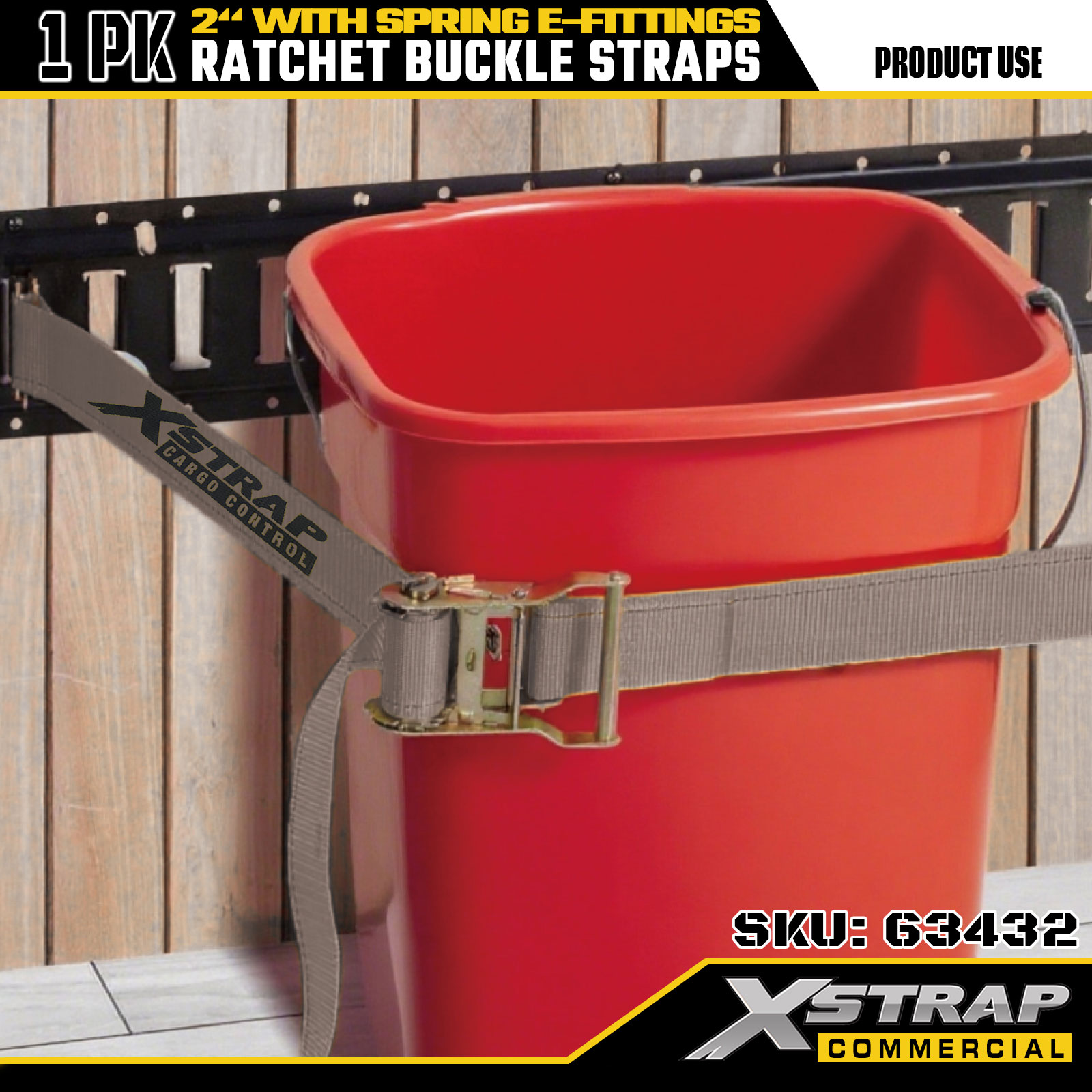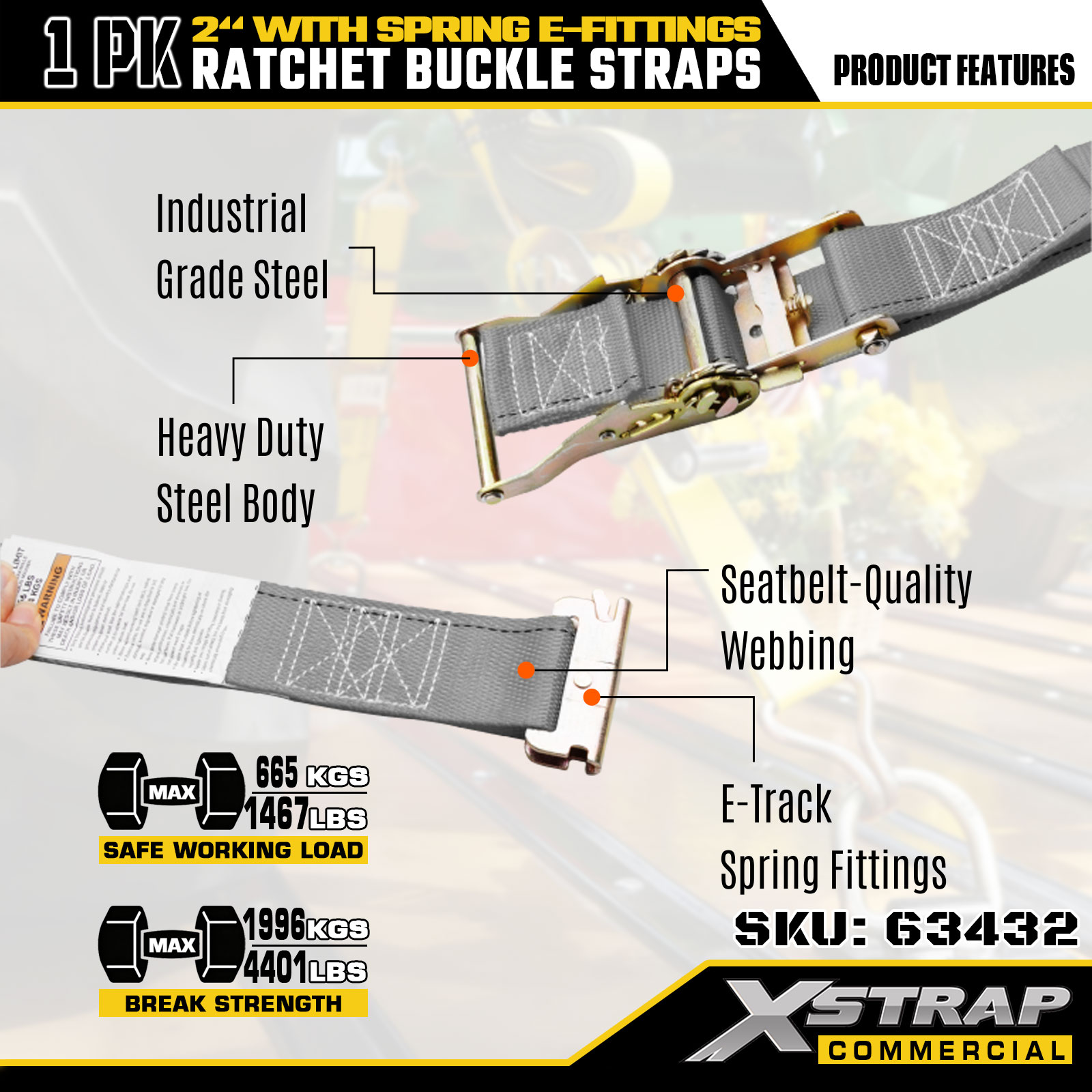 Xstrap 1 paquet de sangles d'arrimage à cliquet, sangles de sécurité en polyester de 2" x 16', charge de travail sûre de 1467 lb et résistance à la rupture de 4401 lb, avec raccords E à ressort pour camion, tondeuse, VTT