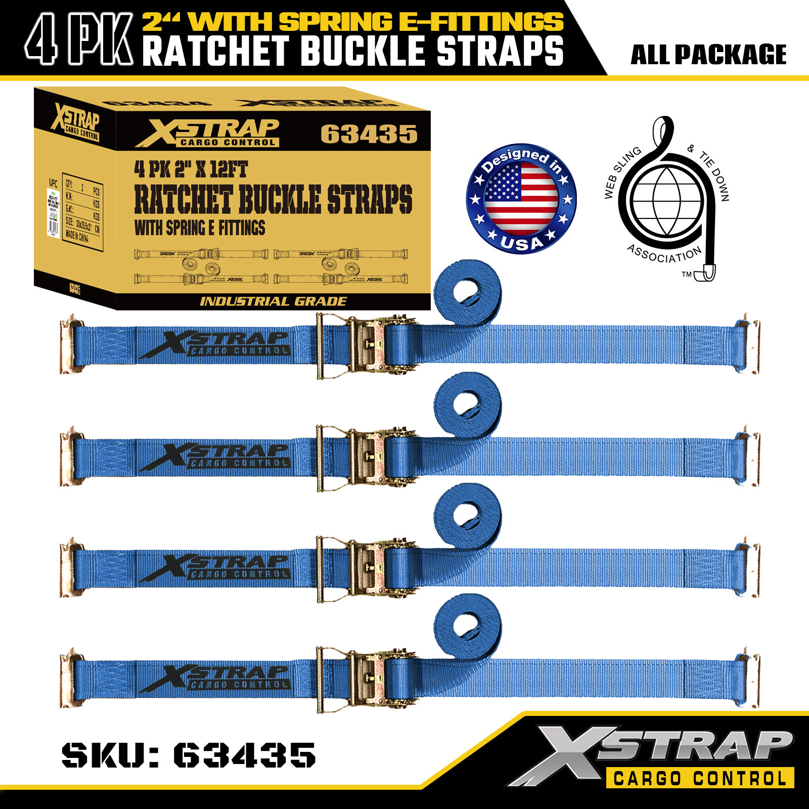 2" x 12' 4PK Sangles à boucle à cliquet avec raccords E à ressort