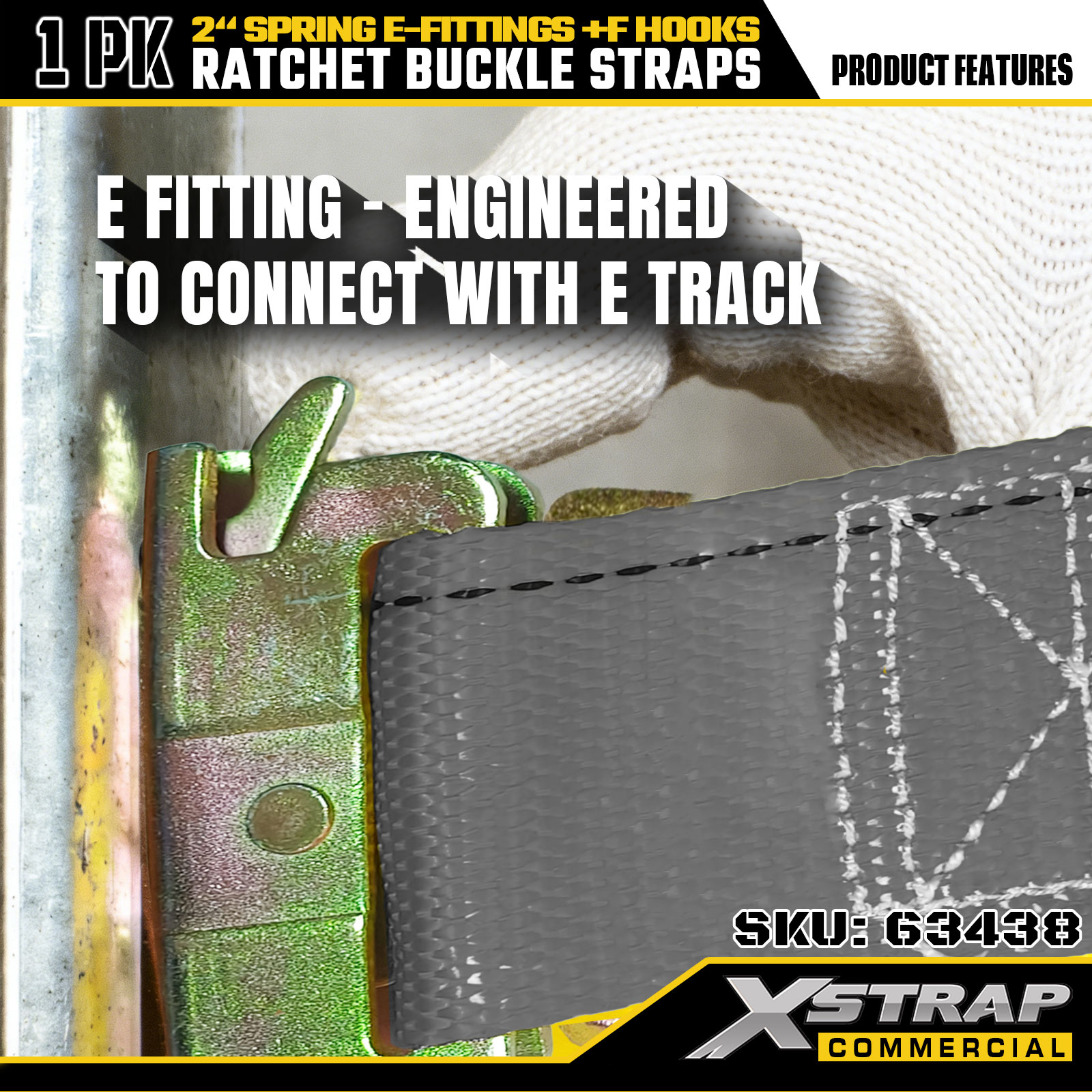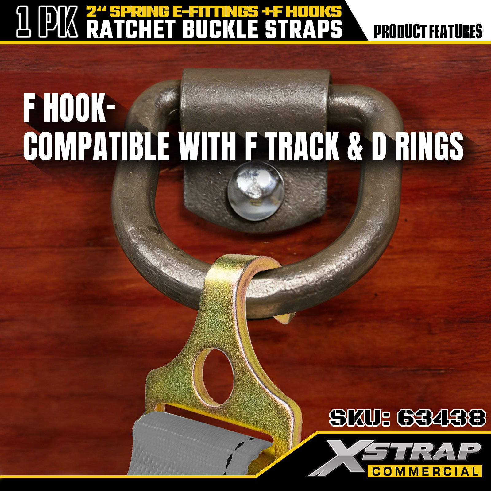 Xstrap 1 paquet de sangles d'arrimage à cliquet 2" x 16' en polyester avec raccords en E à ressort et crochets en F, 733 lb SWL et 332 lb résistance à la rupture pour camion, déménagement, transport de marchandises générales