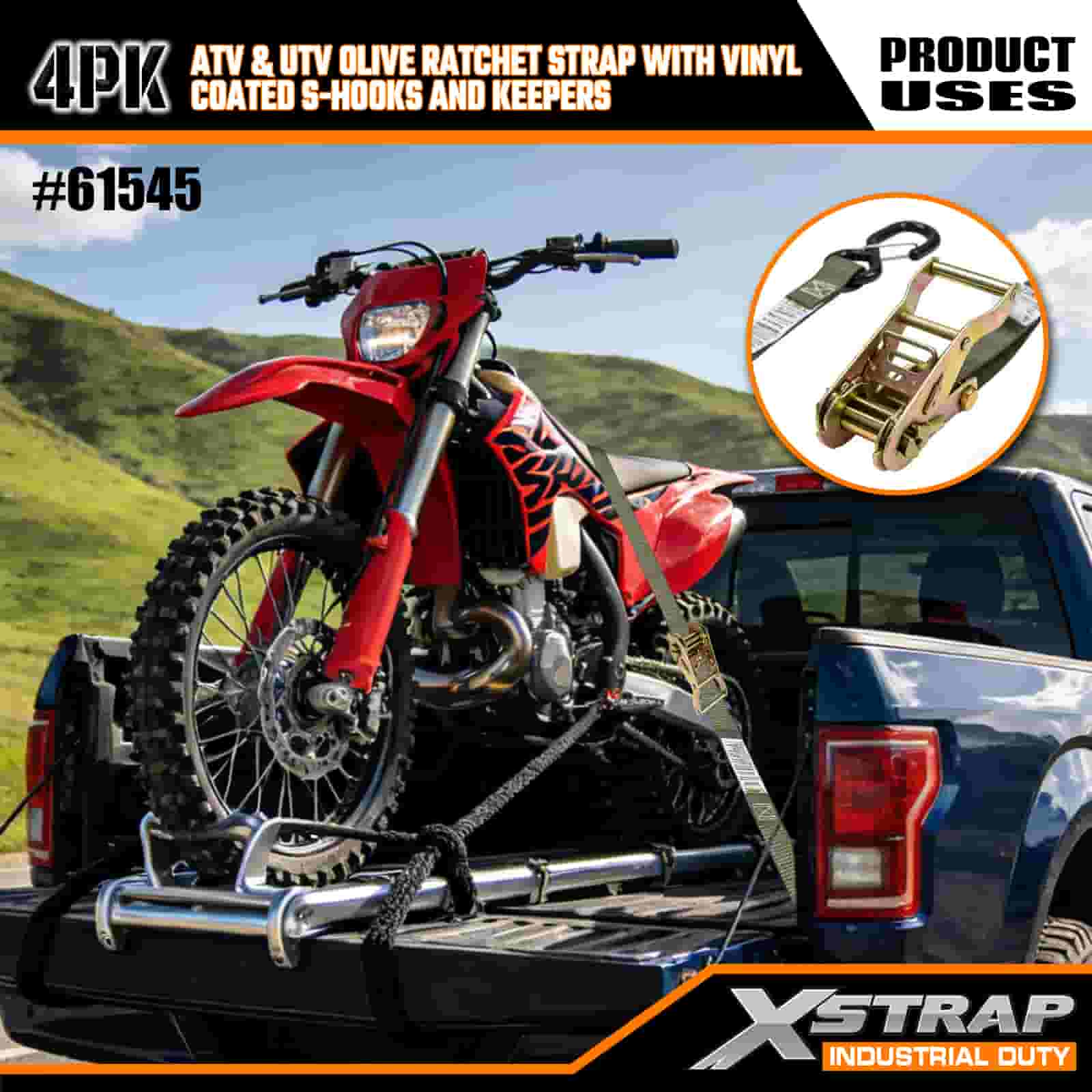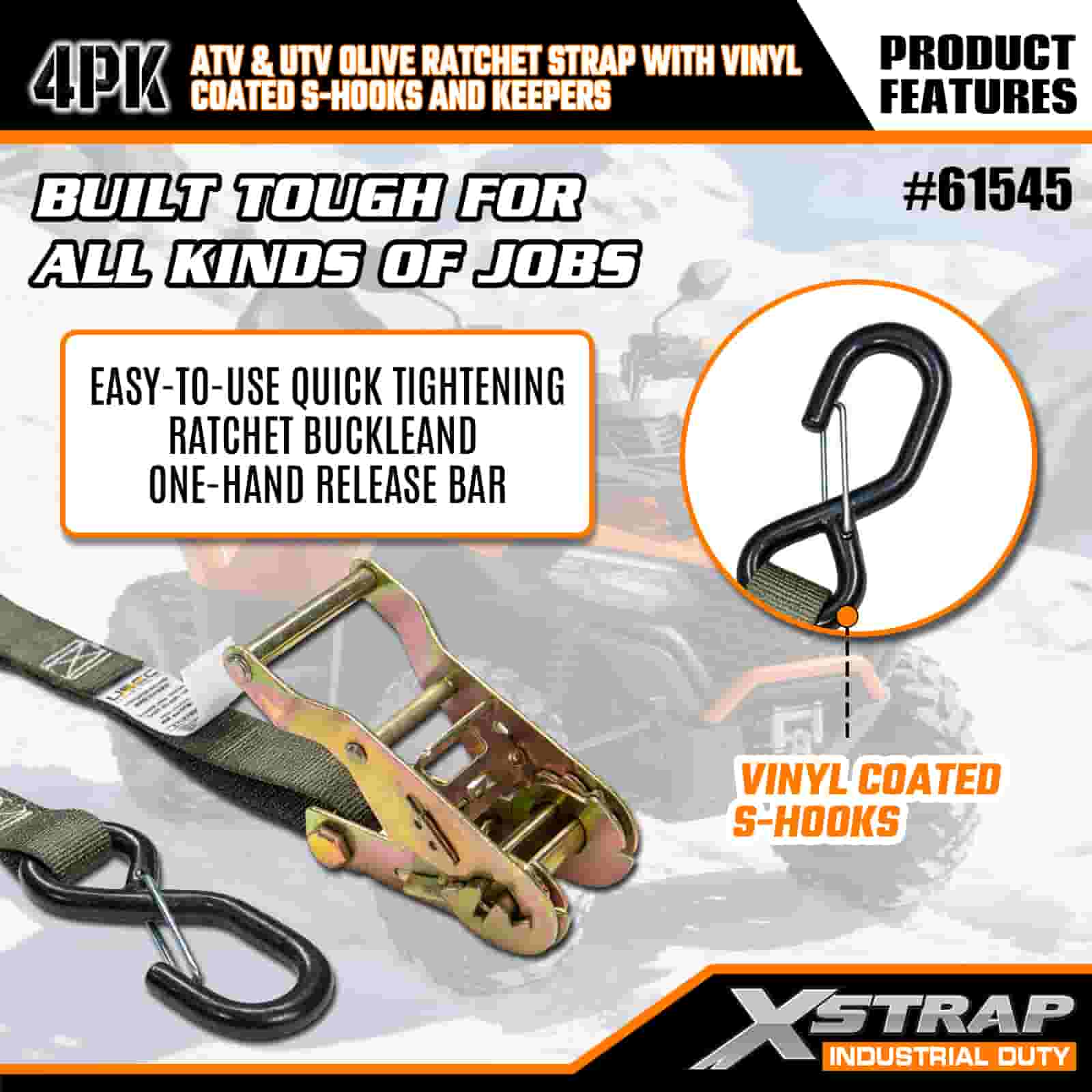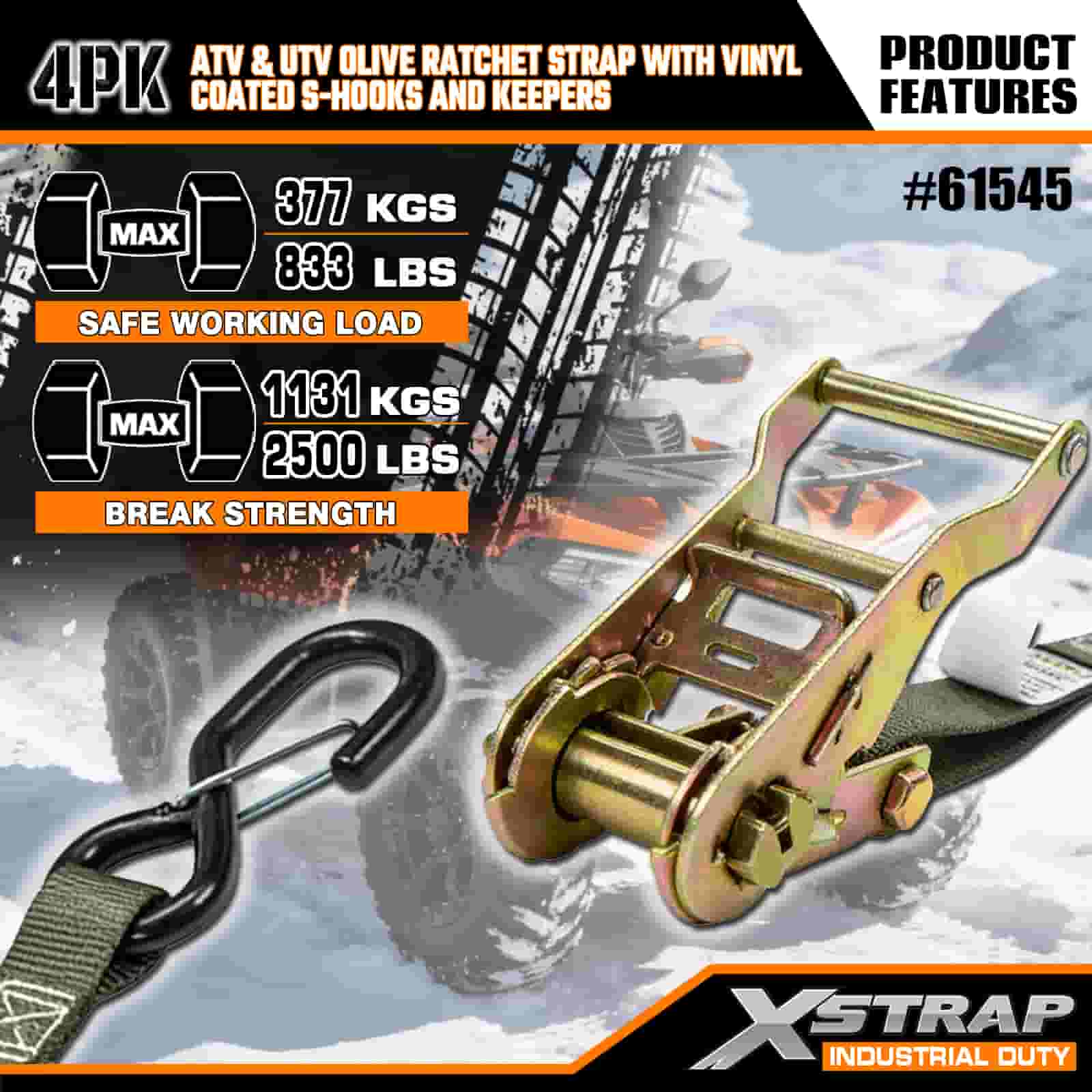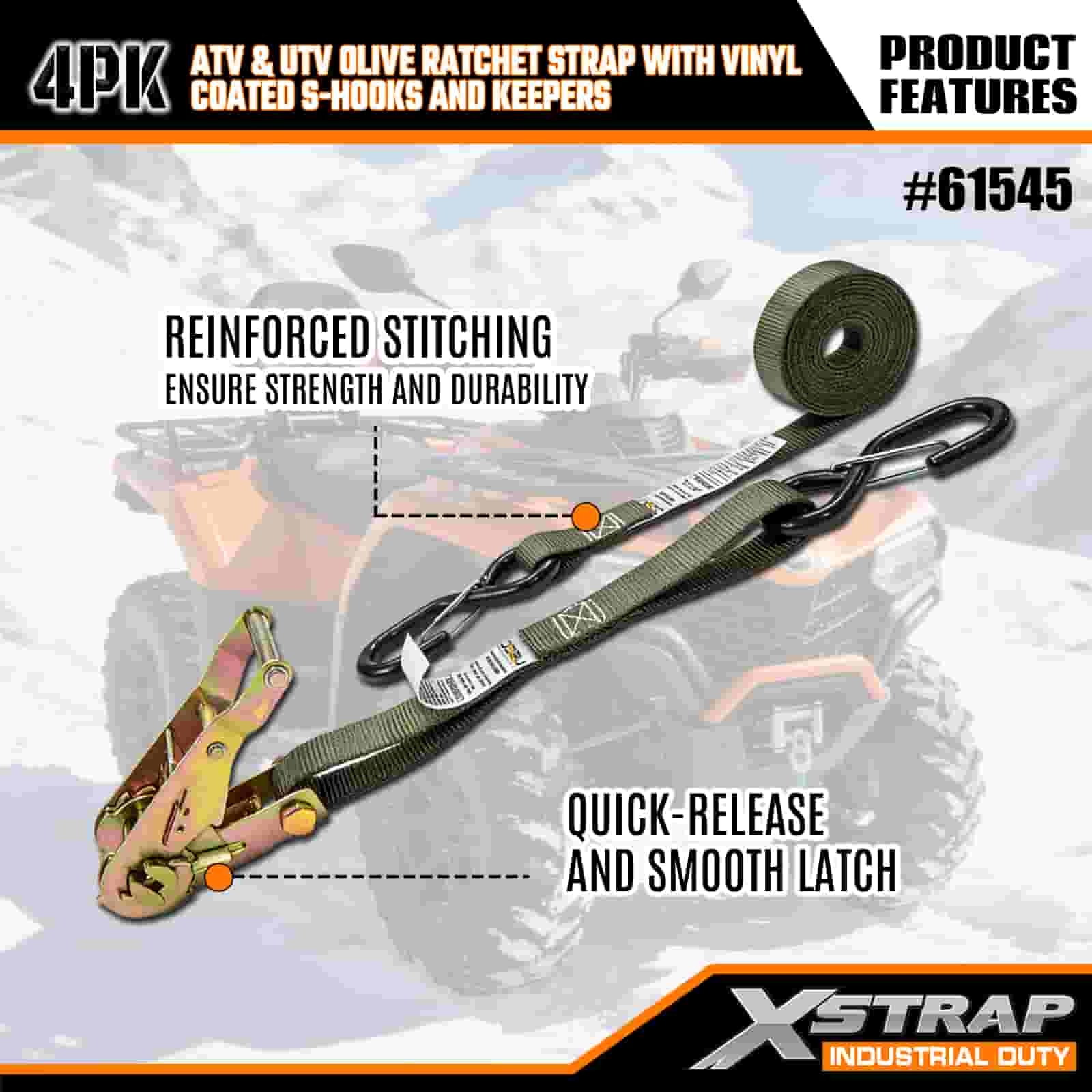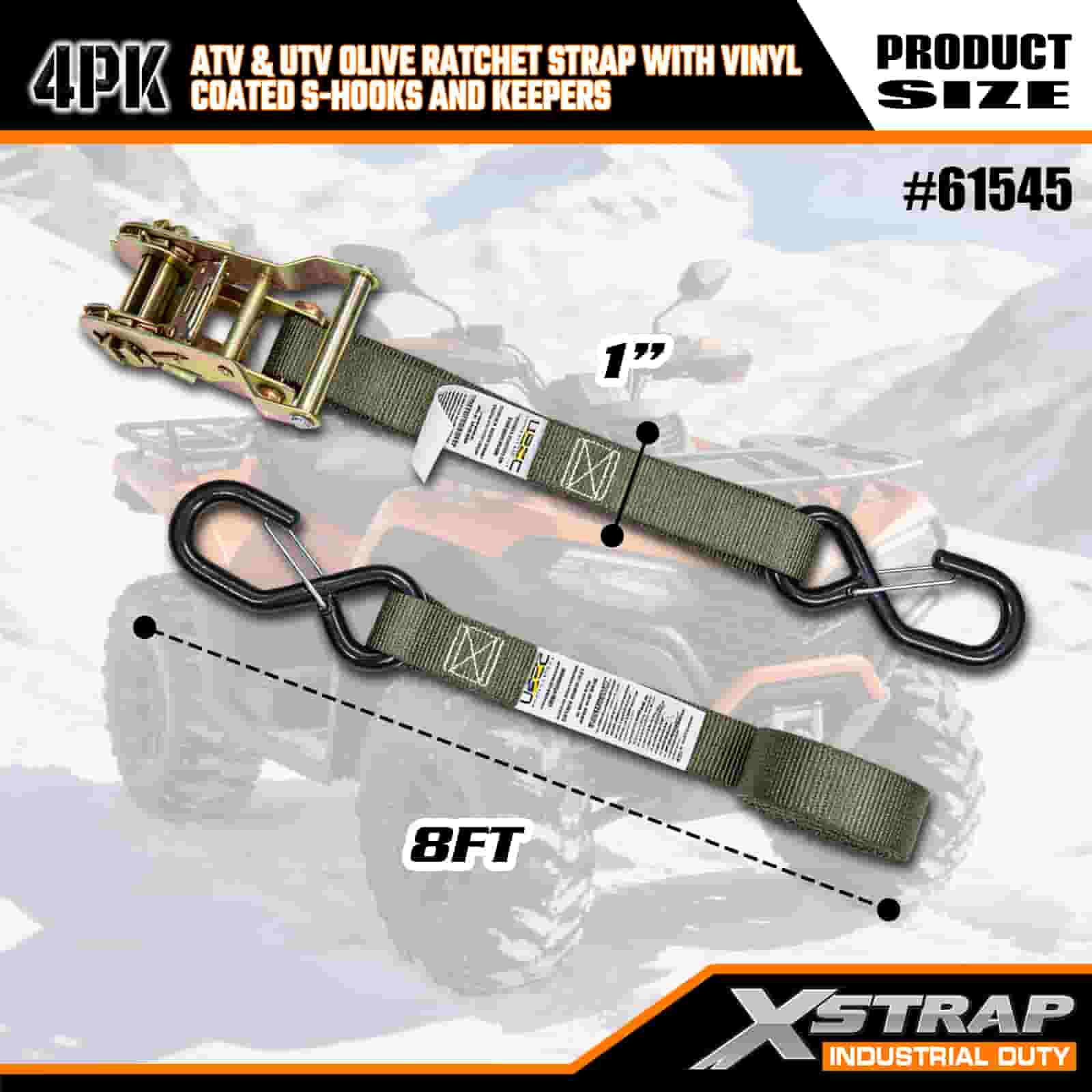 - Lot de 4 pour une couverture totale : cet ensemble comprend 4 sangles, vous donnant suffisamment pour sécuriser l'avant et l'arrière de votre VTT ou UTV. La longueur de 8 pieds s'adapte aux plates-formes de camion, aux remorques ou aux points d'arrimage, afin que vous puissiez obtenir une prise stable à chaque fois.