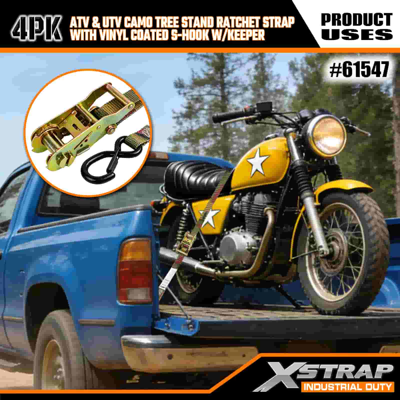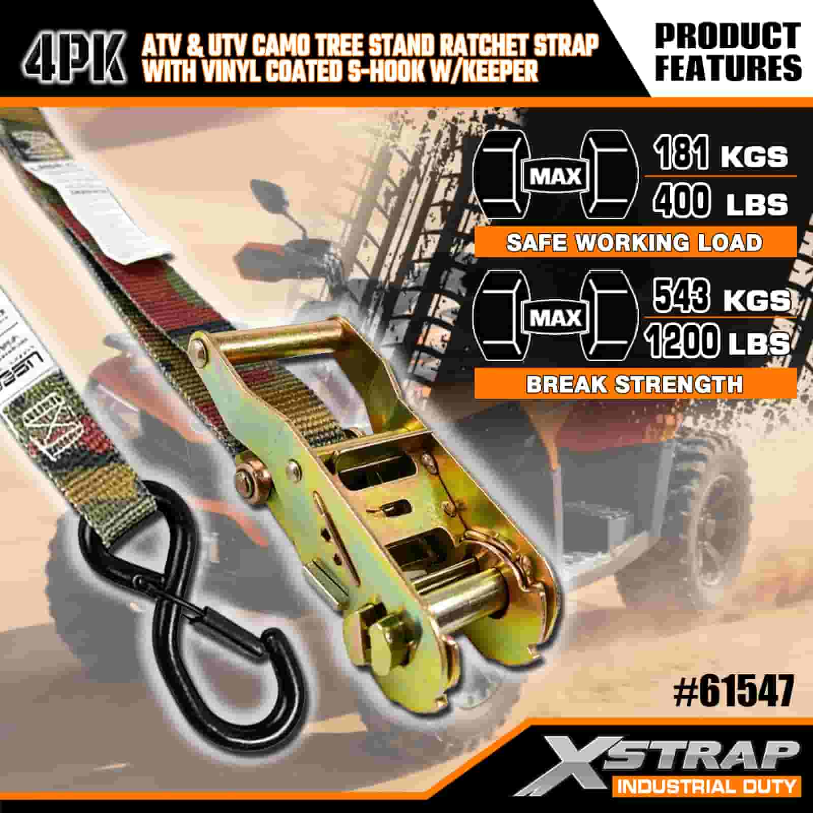 - Lot de 4 pour une couverture complète : cet ensemble comprend 4 sangles, vous donnant suffisamment pour sécuriser l'avant et l'arrière de votre VTT ou UTV. La longueur de 8 pieds s'adapte aux plates-formes de camion, aux points d'arrimage de remorque et aux ancrages de support d'arbre, de sorte que vous obtenez une prise stable à chaque fois.