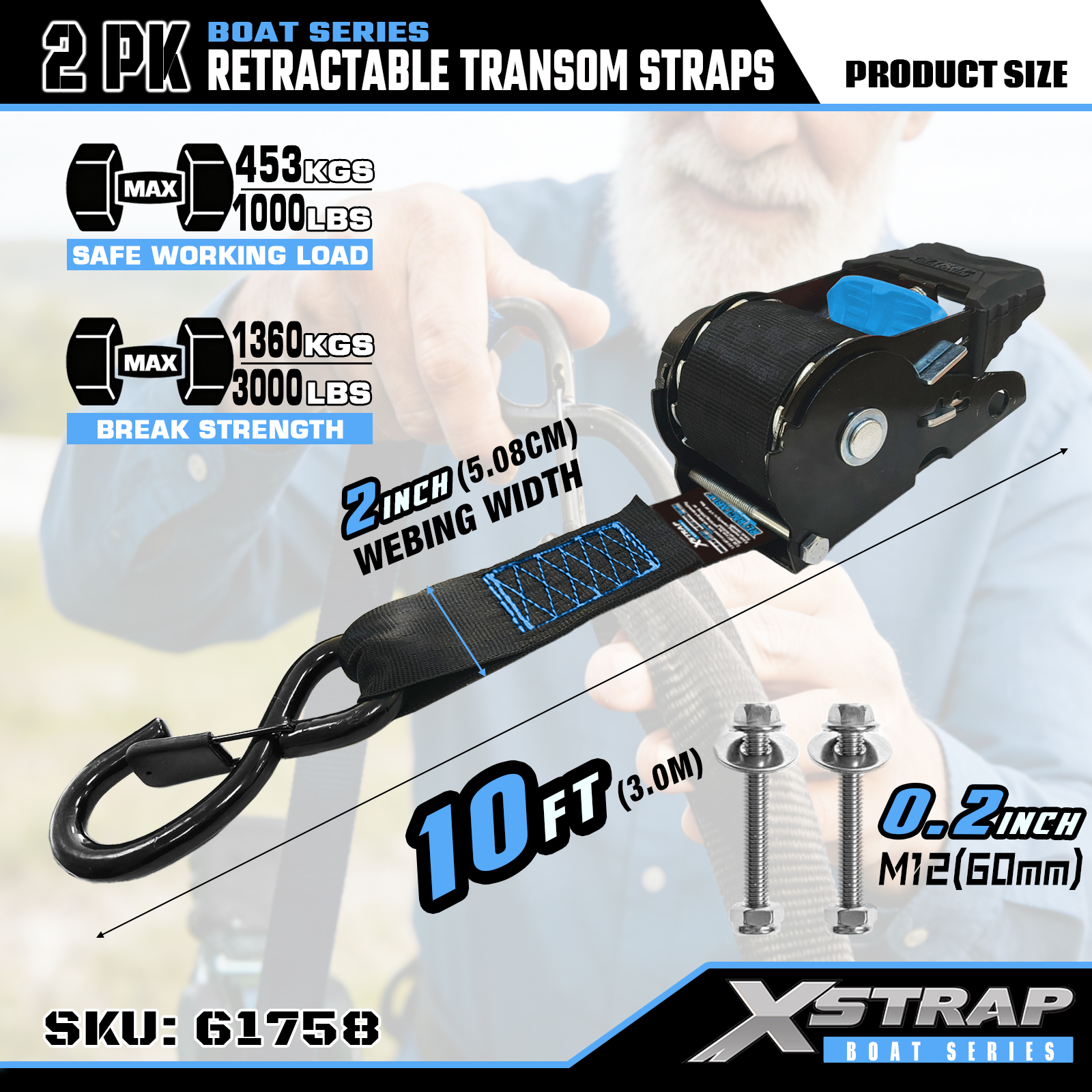Xstrap 61758 Sangles de tableau arrière rétractables avec crochets de sécurité 1 000 LB SWL