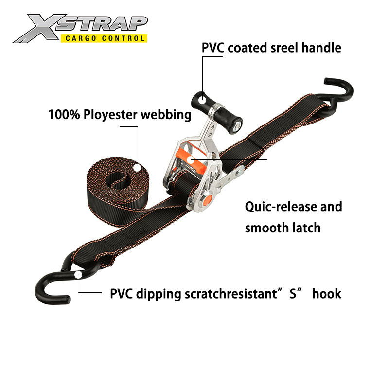 Il s'agit de nos sangles à cliquet de barres T de 1-1 / 4 pouces 32 mm. La conception de la poignée de la barre T est différente de la poignée traditionnelle du mécanisme à cliquet, ce qui peut donner un effet de levier supplémentaire et réduire la fatigue de la main.