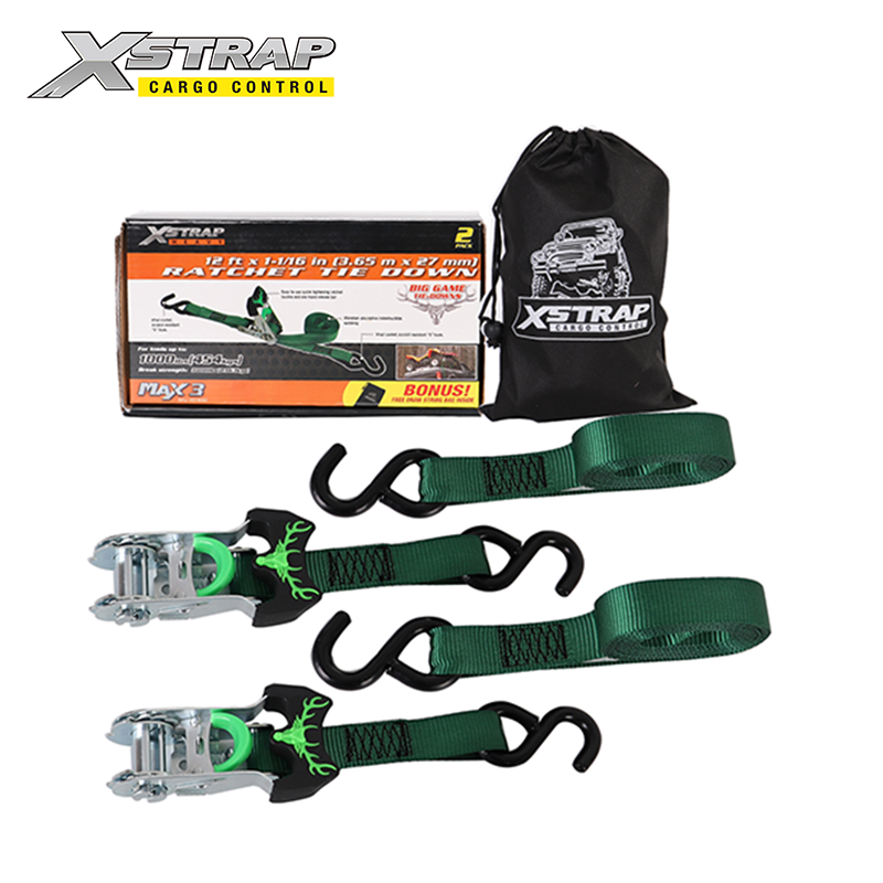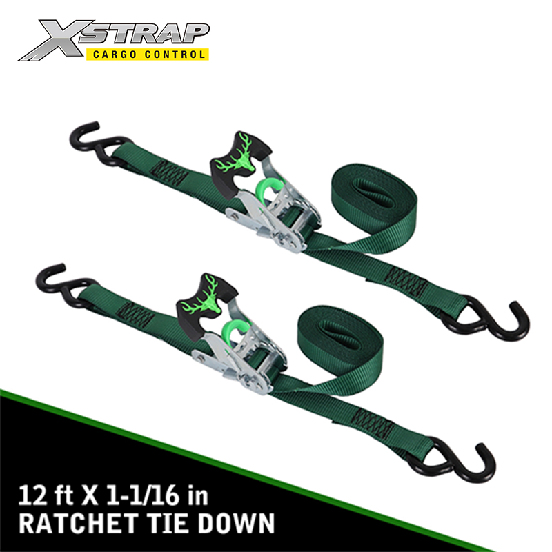 Les sangles à cliquet de 27 mm (1-1 / 16 pouces) avec des crochets S sont nos nouvelles sangles de cliquet de conception. La longueur de sangle est de 14 pieds.