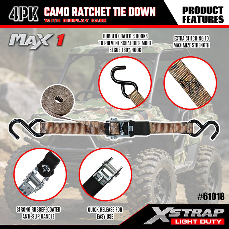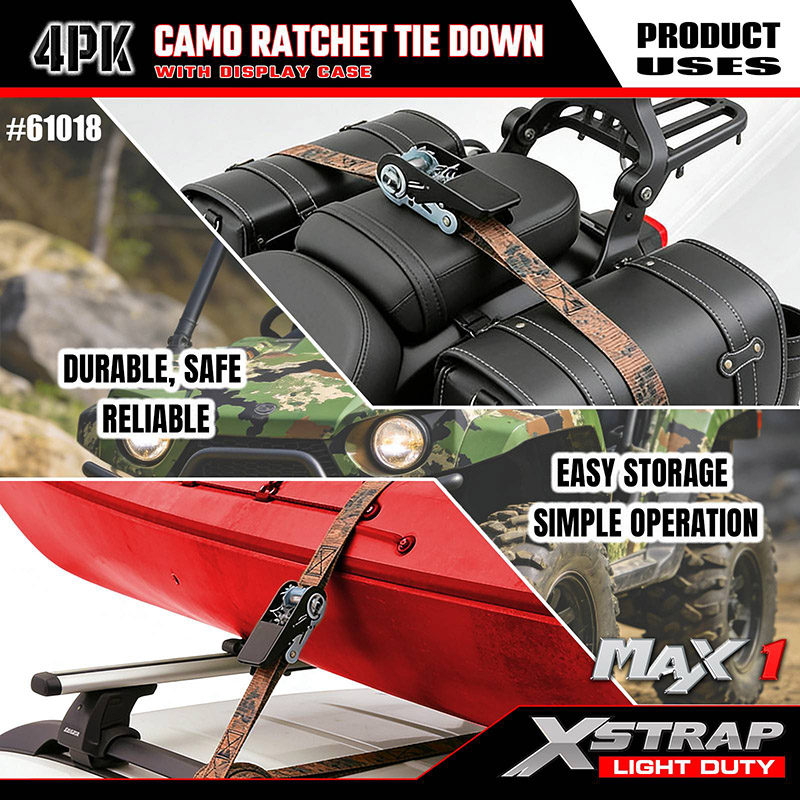 SMK est un fabricant en Chine de L'arrimage à cliquet camouflage Xstrap mesure 1 po X 10 pi, la charge de travail sûre est de 300 lb et la résistance à la rupture est de 900 lb et un fournisseur personnalisé de L'arrimage à cliquet camouflage Xstrap mesure 1 po X 10 pi, la charge de travail sûre est de 300 lb et la résistance à la rupture est de 900 lb. La gamme de produits de SMK comprend des sangles d'attachement, des cordons élastiques, des sangles de remorquage, des élingues de levage, des palans et des accessoires 4x4, largement utilisés dans les secteurs de transport, de logistique, de plein air et industriel. Sa marque interne XStrap jouit d'une forte reconnaissance sur les marchés mondiaux, aux côtés de flexible Services OEM / ODM pour les besoins personnalisés.