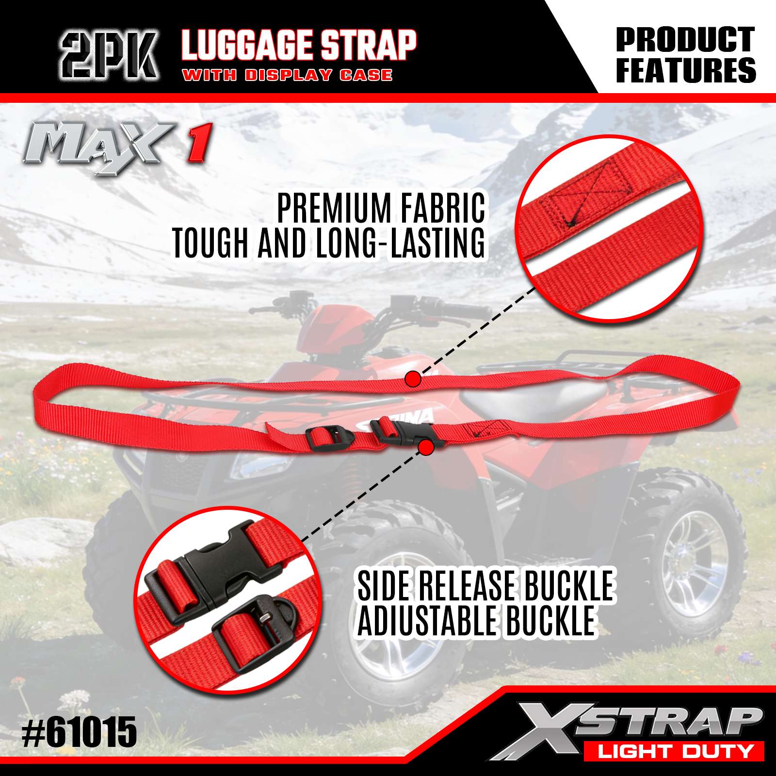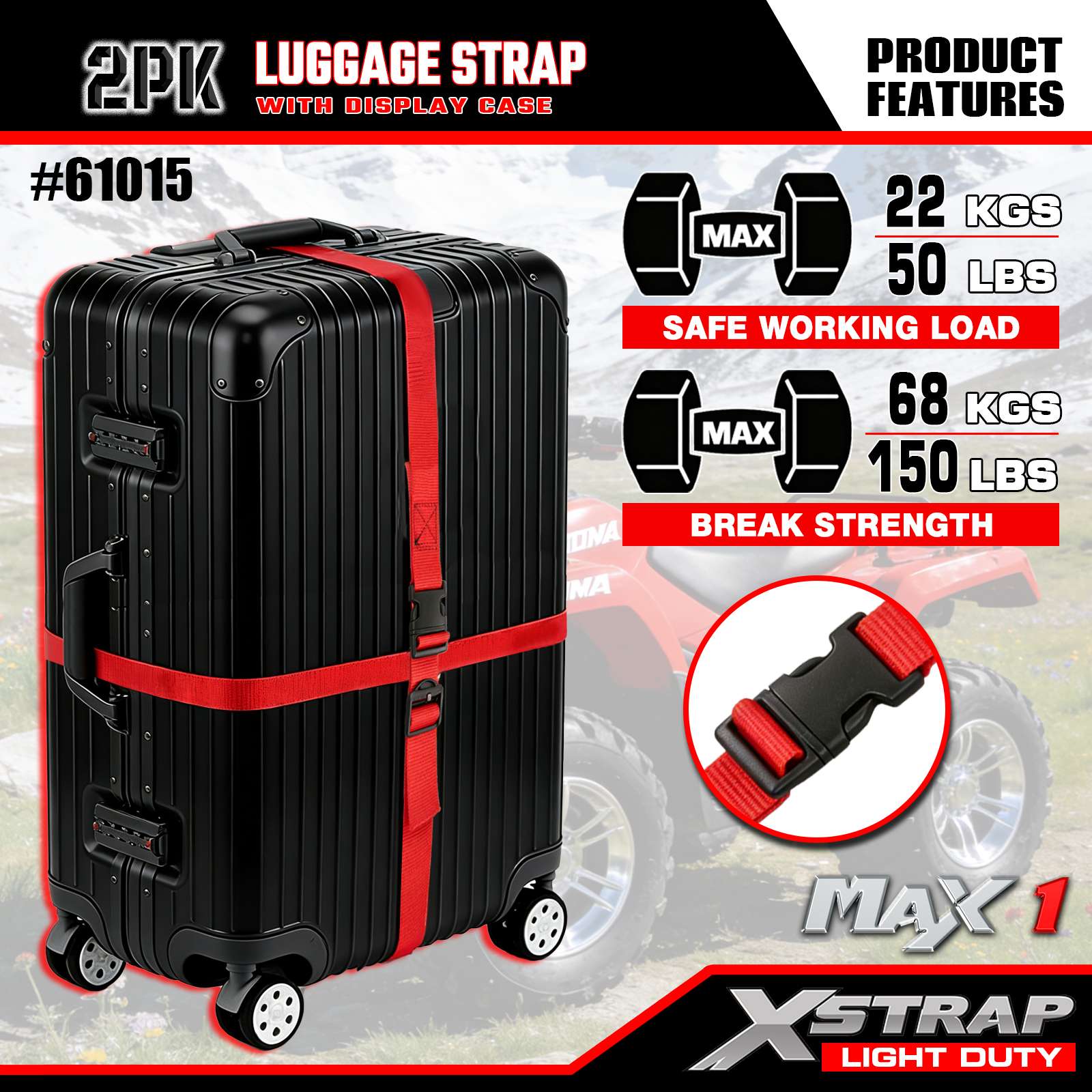 - Boucle réglable à dégagement rapide : la boucle en plastique à dégagement latéral est facile à ouvrir/fermer d'une seule main, tandis que la conception réglable vous permet de personnaliser la longueur de la sangle pour s'adapter à des bagages de différentes tailles (des petits sacs aux grandes valises).