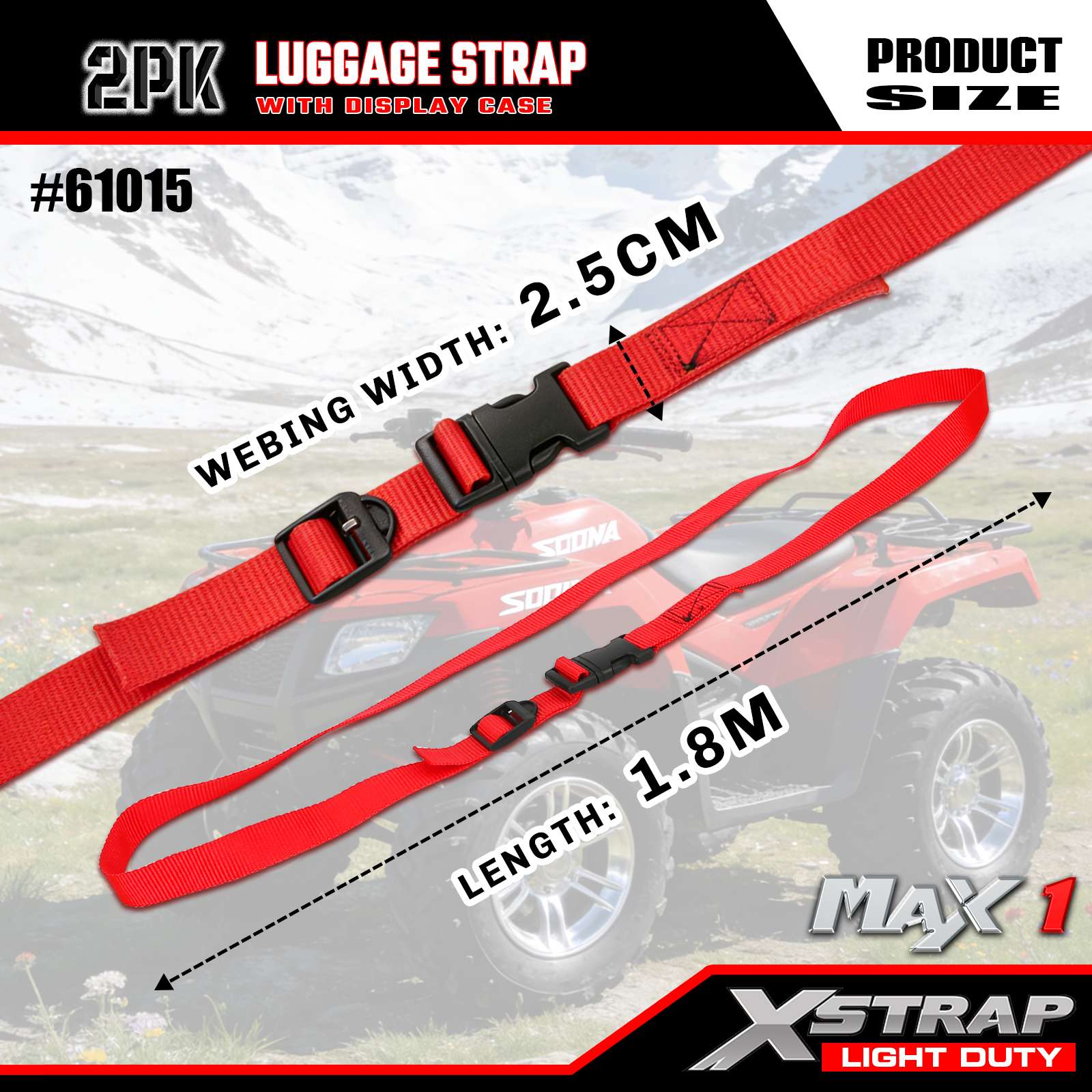 Xstrap Lot de 2 sangles de bagage réglables, 2,5 cm x 1,8 m – Capuchon de charge de 22,7 kg – Résistance à la rupture de 150 kg – Sangles de chargement pour valises, connecteur de ceinture de voyage facile à identifier maintenant l'ensemble valise, prolonge la durée de vie du sac, la relie sangle deux sacs, rouge