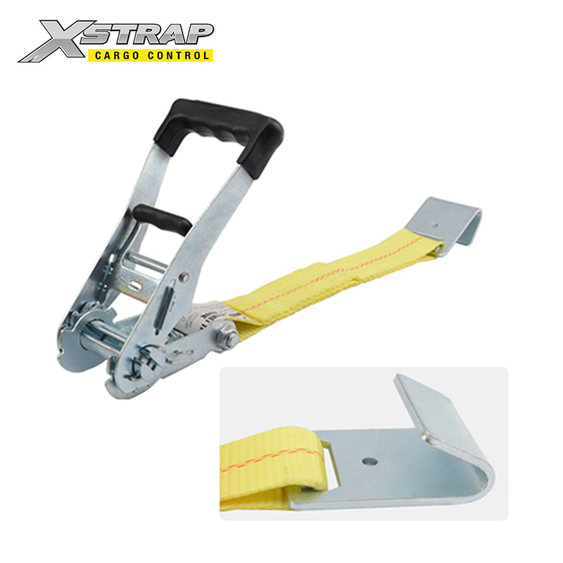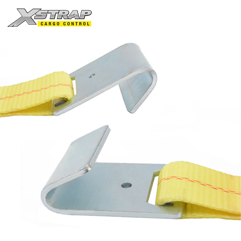 Il s'agit de nos bretelles à cliquet de 2 pouces avec des crochets plats. Ces types de crochets de sangles à cliquet sont conçus pour se fixer facilement aux points d'ancrage, fournissant une connexion sécurisée à la cargaison.