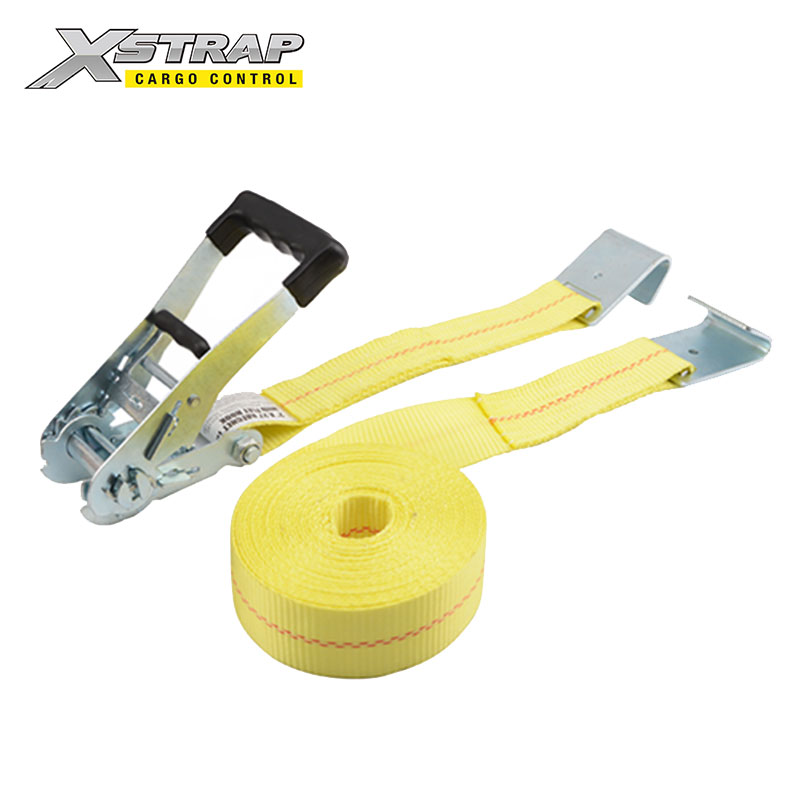 Ces bretelles à cliquet de 30 pieds de large de large avec des crochets plats sont populaires pour tous les transporteurs et remorques à plat. Léger en poids mais en force robuste.
