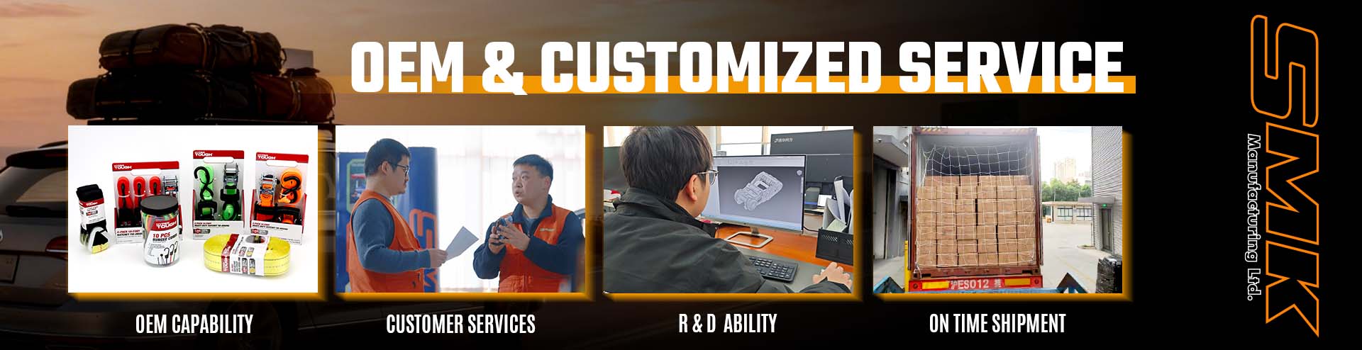En plus de nos gammes de produits principales - sangles de randonnée, attaches, cordons élastiques et dispositifs de remorquage - SMK soutient les clients dans le développement de nouveaux produits adaptés à des besoins spécifiques sur le marché. De la conception d'apparence et de la validation structurelle à la production de masse, nous offrons un support technique complet.